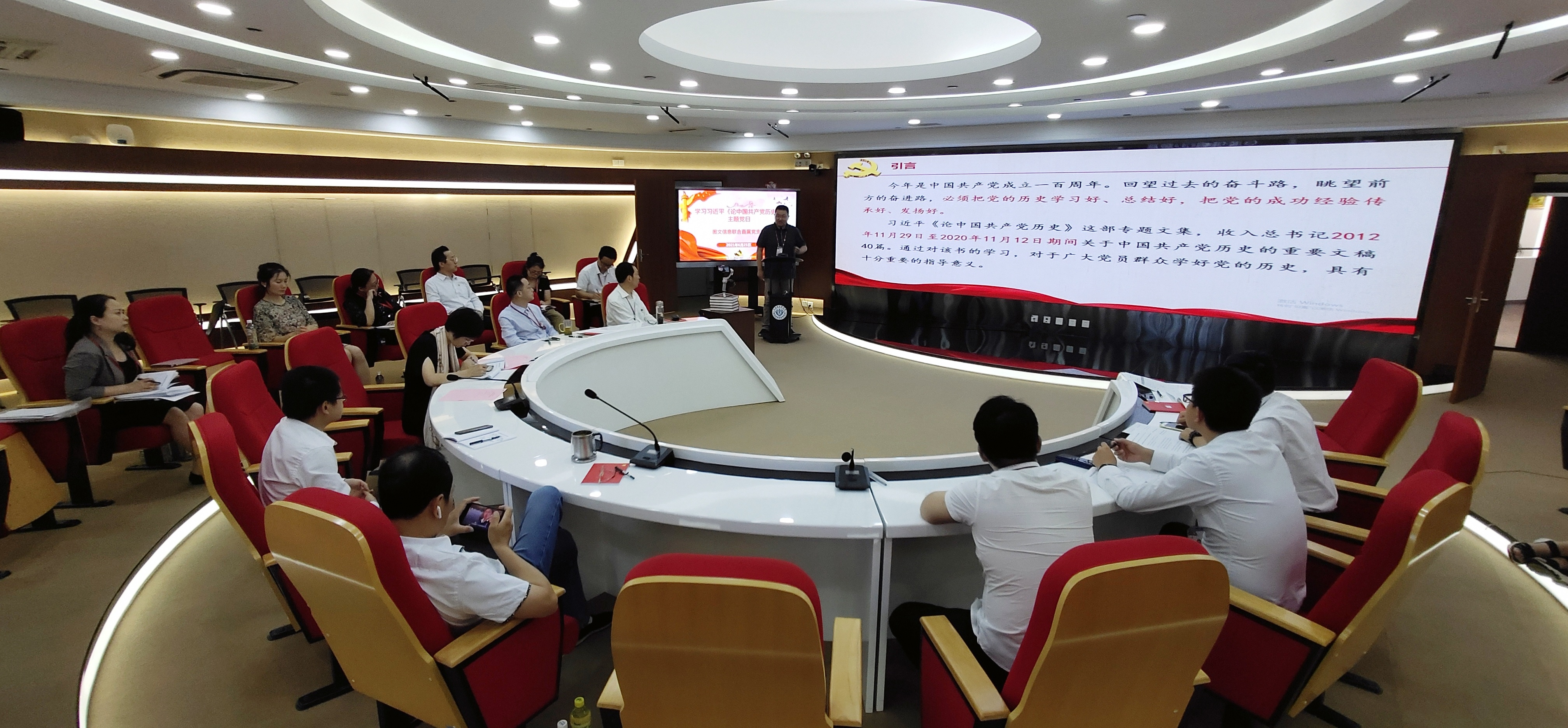 6月25日,图文信息联合直属党支部全体党员齐聚图书馆5楼会议室开展集中学习,本次学习有幸邀请到医学影像学院专职党建员、党总支宣传委员谭松珊老师为本支部所有党员做题为“学习习近平《论中国共产党历史》”专题报告。
