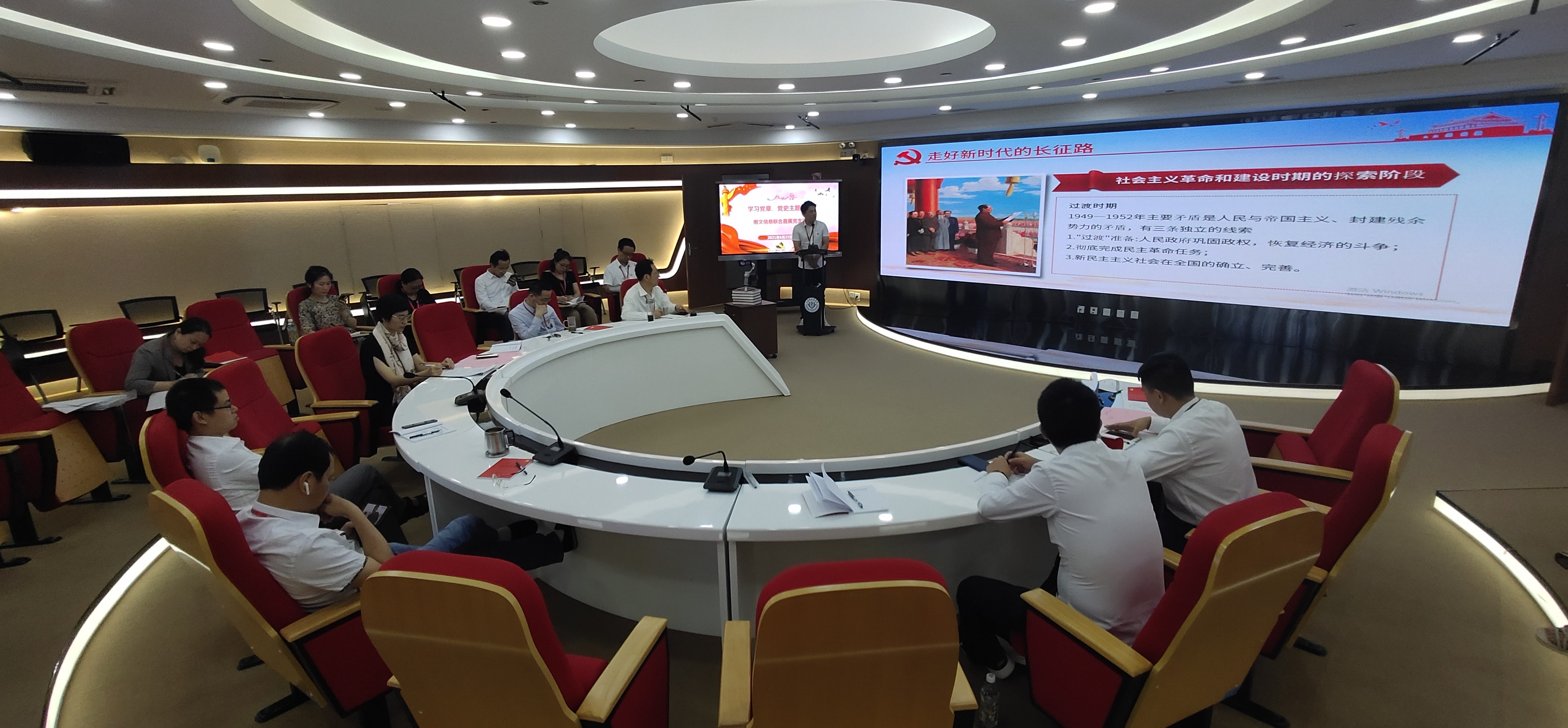 阅思结合,交流分享。百年党史,峥嵘岁月,红色政权来之不易、新中国来之不易、中国特色社会主义来之不易,党员们回顾历史,深有感触。青年党员代表陈波和王一鸿分别就新民主主义历史时期所发生的历史事件向在座的党员进行叙述和交流;老党员同志代表唐坚刚老师和王云光书记作为讲述了各自的学习感想;张军老师作为非党员的科级干部从人均国民收入、人均寿命、GDP等几组数据的比较,生动立体地展示了改革开放这一前瞻性决策的伟大之处,感同身受地表达了改革开放带来的机遇与挑战;预备党员代表郝辰业老师从为致敬改革开放40周年而制作的影视剧《大江大河》引出年轻一代对改革开放的认识。