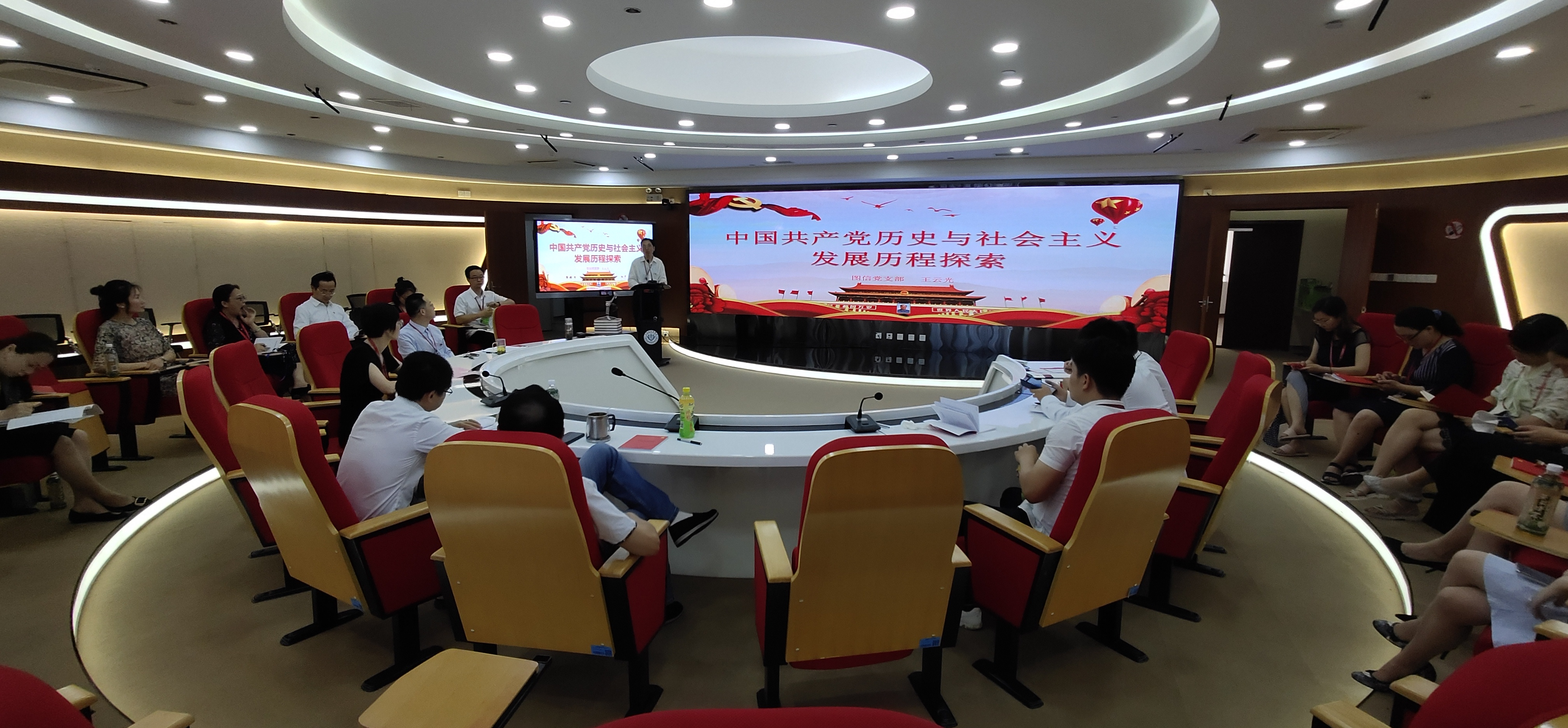 为庆祝中国共产党成立一百周年,深入推进党史学习教育走深走实, 从党的百年奋斗历程中汲取力量。6月25日下午,图文信息联合直属党支部书记王云光以“中国共产党历史与社会主义发展历程探索”为主题,在南苑图书馆5楼会议室为图文信息党支部全体党员上党史专题党课,支部全体党员参加学习。