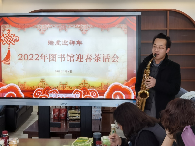 茶话会上,两部门领导对本部门一年来的工作进行了回顾和总结,对老师们的辛勤付出表示感谢,并对下一年度的工作进行展望。在欢乐祥和的氛围中,老师们放松心情,敞开心扉,相互交谈,气氛热烈。平时大家忙于工作,很少有机会能坐在一起交流,在茶话会上大家一边享用零食,一边说说笑笑,非常开心。茶话会上,老师们还进行了才艺展示,有的老师吹奏萨克斯,动听欢快的音乐营造了欢乐喜庆的氛围;有的老师表演山东快板,富有地方特色的韵味让人回味无穷,也给茶话会增添了许多喜庆;穿插其中的游戏环节更是将欢乐的气氛推向一个又一个高潮,现场笑声和欢乐声一片。还有的老师把孩子带来一起参加,“图二代“和“馆二代“的精彩表演也为茶话会带来更多欢乐。